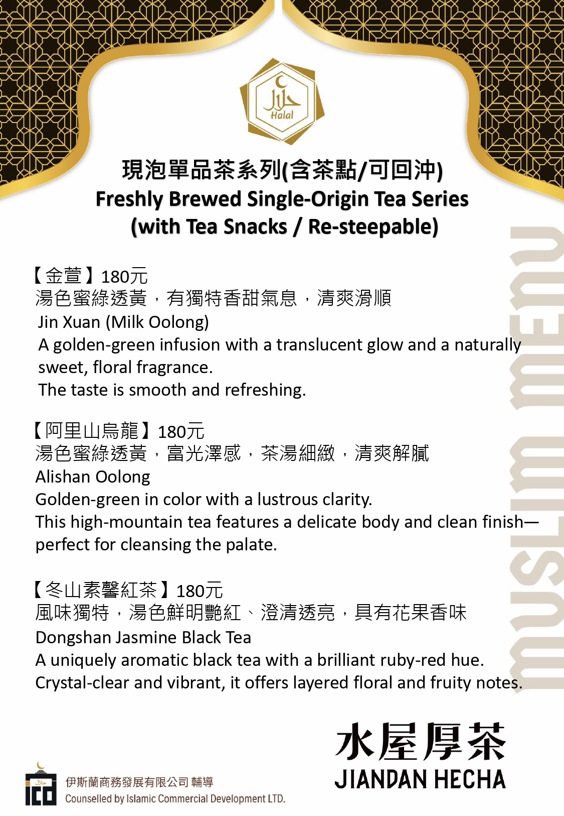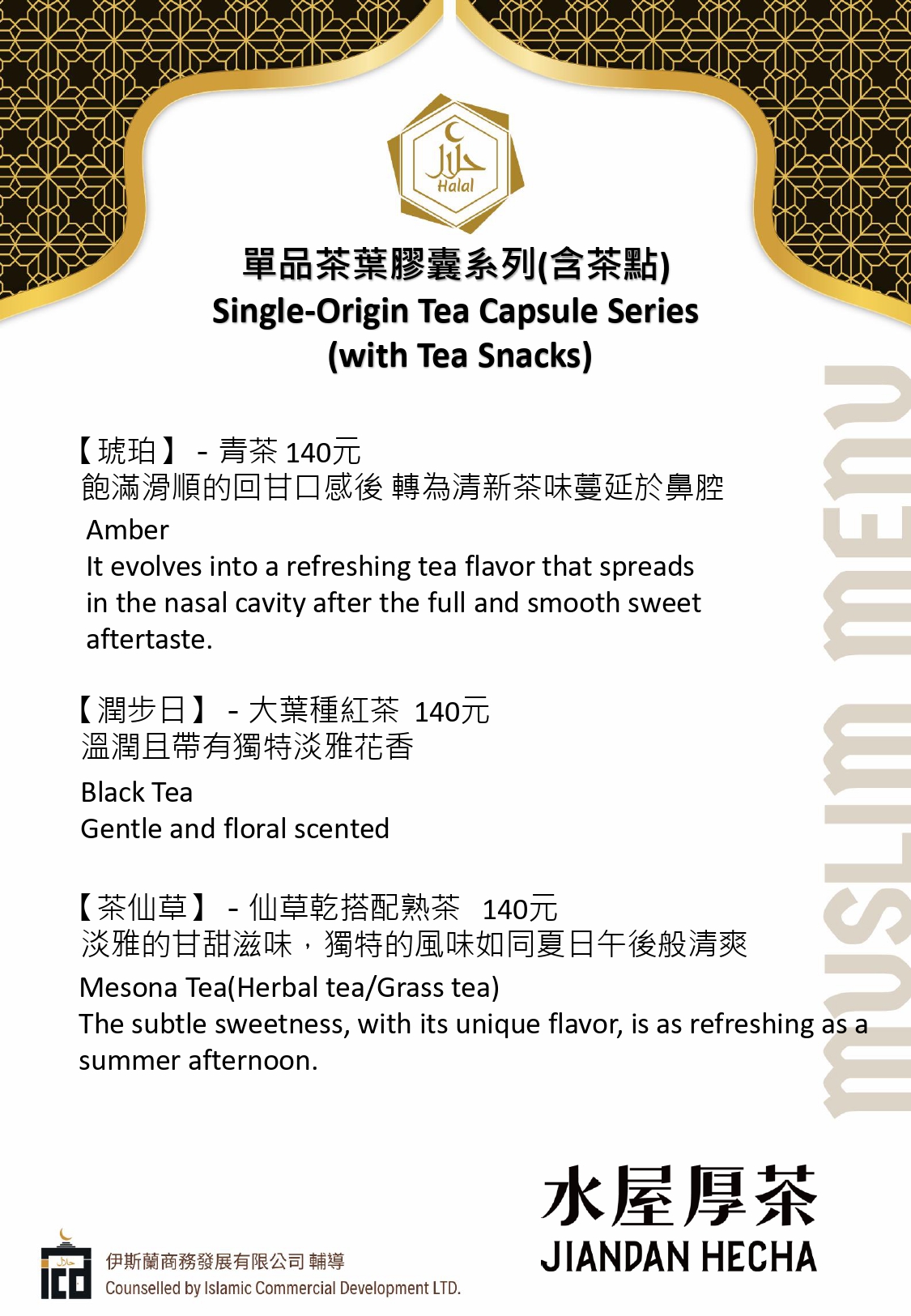Taste the Flavors [Yilan County] Jiandan Hecha 2025-12-04 Share Share Share it on Link general.share.close general.share.copy_to_clipboard 🕌 Muslim-Friendly Restaurant (MFR) ✅ Drinks & Dessert 📞 Phone +886-3-9871868 📍 Address No. 103, Sec. 4, Jiaoxi Rd., Jiaoxi Township, Yilan County 🕒 Opening Hours Monday to Friday 10:00–17:30 🌐 Links 🍴Menu: Back